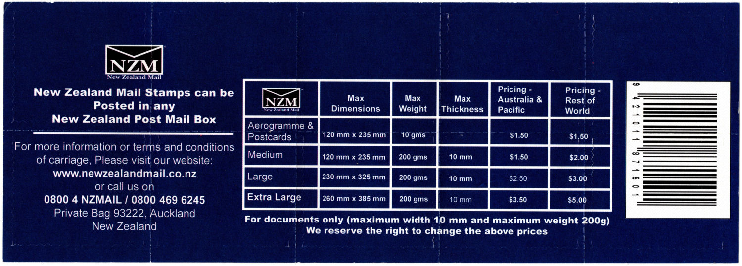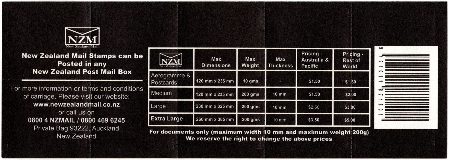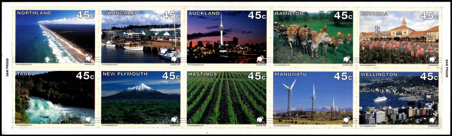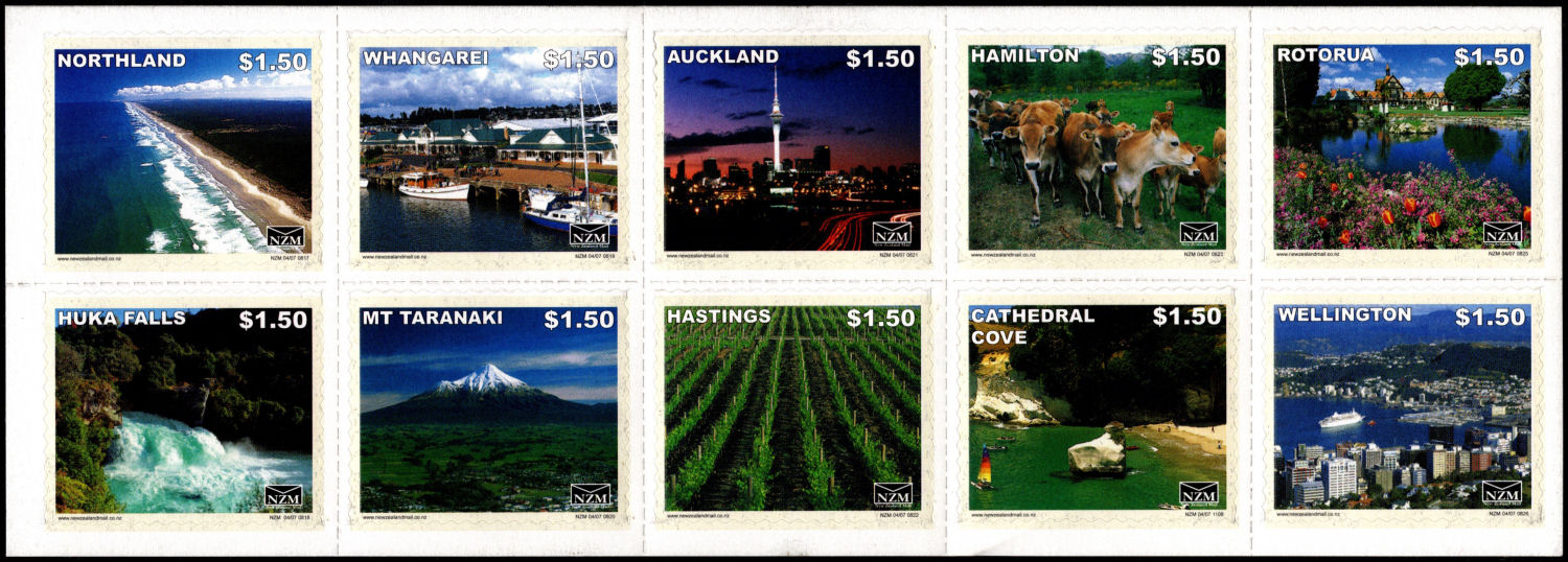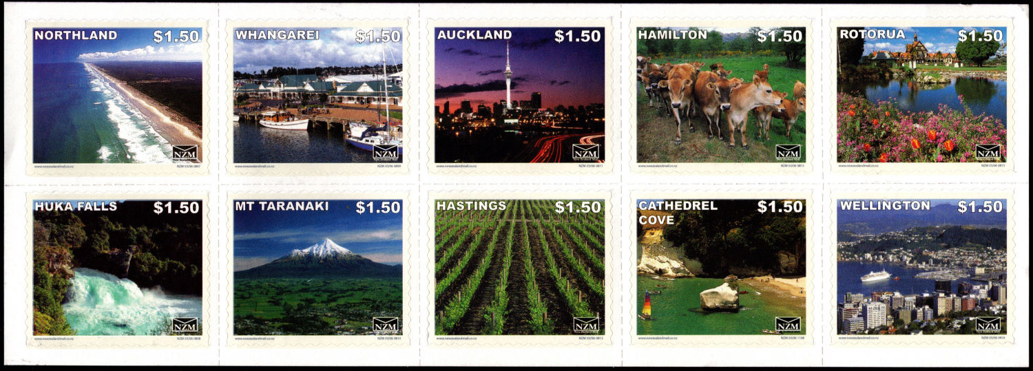 These stamps were larger than normal. The sheet first appeared with a Mt. Maunganui image with stamp number 0814.