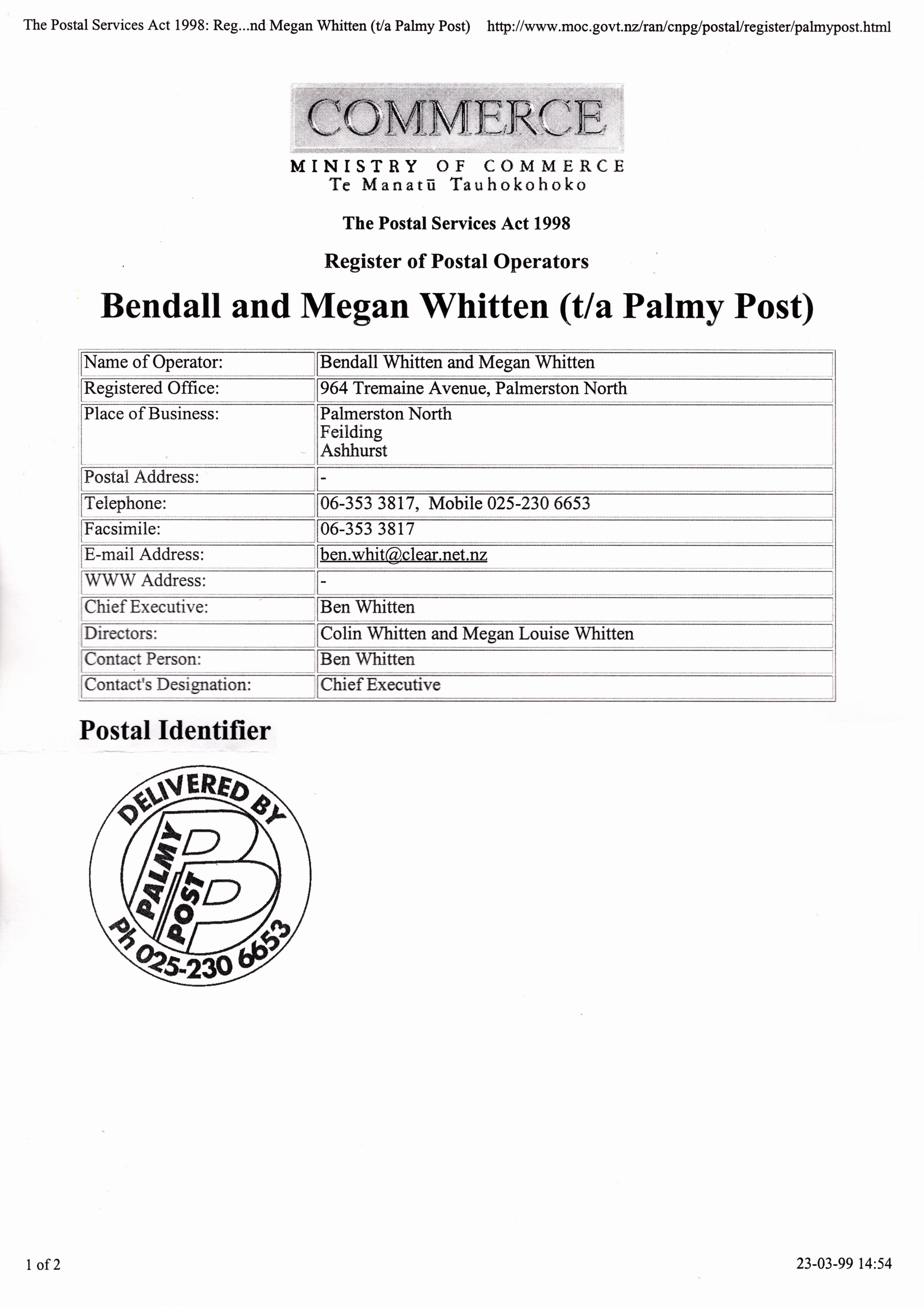 Trading in the Palmerston North, Fielding and Ashurst areas. Operated by Bendall & Megan Whitten.