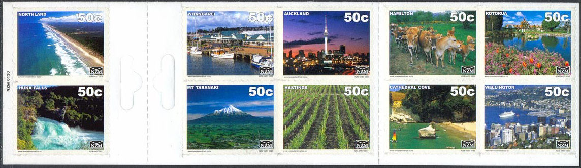 These stamps were larger than normal. The sheet first appeared with a Mt. Maunganui image with stamp number 0814.