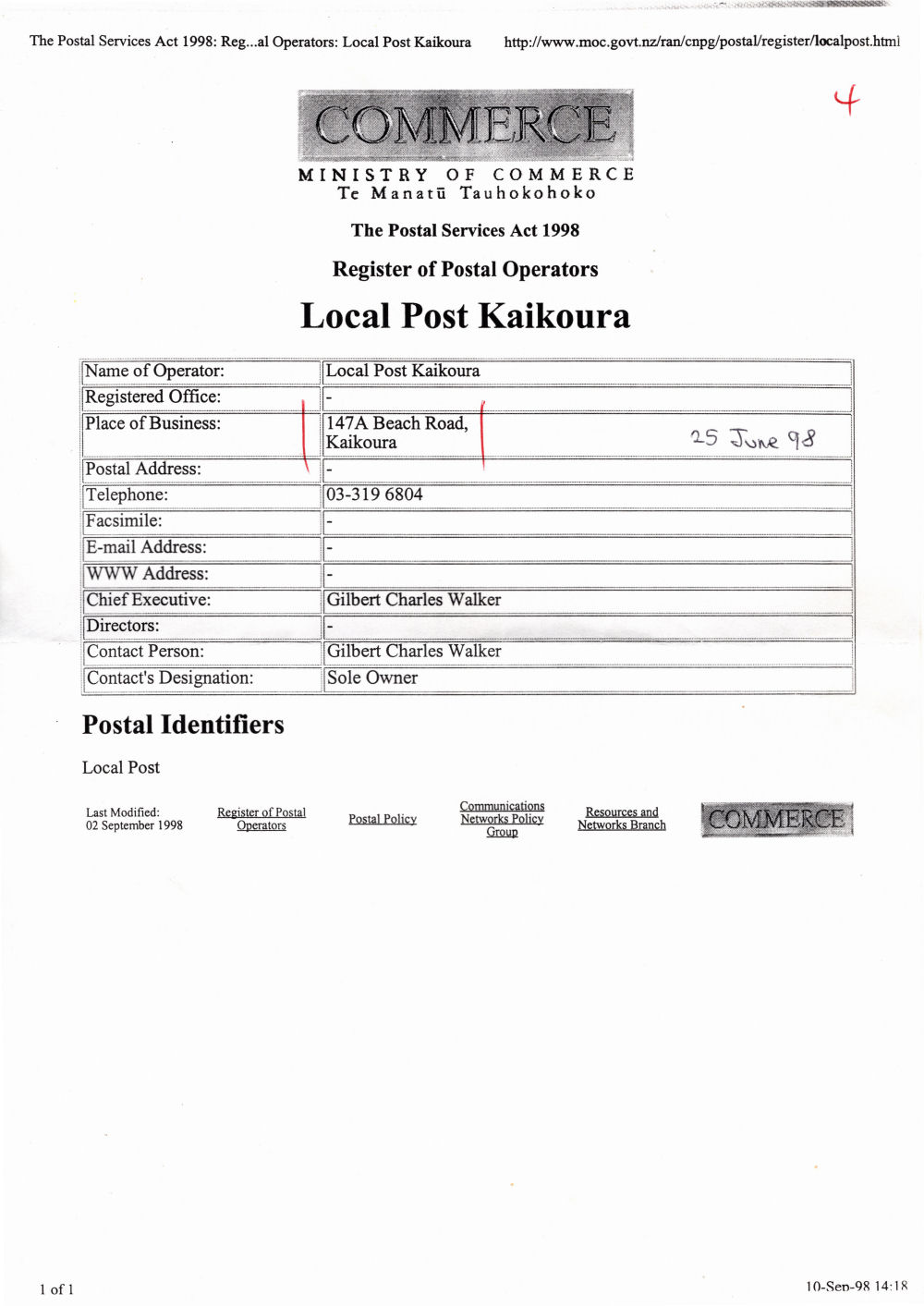 Trading in the Kaikoura area. Operated by Gilbert Charles Walker.