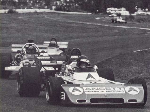 Of the 19 starters, 13 were still running at the conclusion of the Australian Grand Prix at Sandown Park, Melbourne. Once again Matich was fastest qualifier and he and Gardner made the best of the start, with Hobbs and McRae next. McRae soon took Hobbs and shortly afterwards found himself in second place as Matich's Repco engine started to smoke when the scavenge pump broke. McRae took off after Gardner and on the way set a 111.23 mph lap record, but he gained the lead more easily when Gardner's Lola lost its fourth gear.