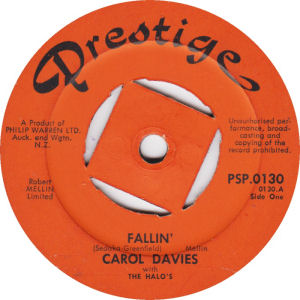 Carol's mother approached Phil Warren, owner of Prestige Records, and asked him to have a listen to her daughter. Phil Warren had been promoting his star Johnny Devlin and His Devils around the North Island, and felt that his show also needed a female touch. The timing couldn't have been better. Phil booked 18 year old Carol Davies as a support act for Johnny's 1958 nationwide tour.