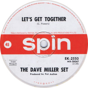 "Get Together b/w A Bread And Butter Day" was released in October, 1968, and was immediately picked up by radio. It ultimately peaked at place 27 in the NSW charts. The label department, of Festival Records, had clumsily prefaced the title with 'Lets' and caused annoying confusion as that had formerly been the title of a Hayley Mills hit. To this day it is still constantly mis-printed.