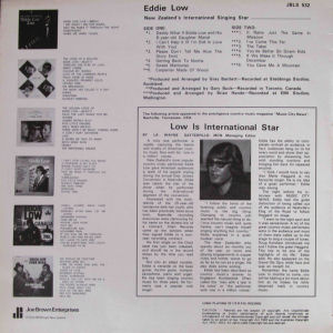 Eddie returned to Nashville in 1973 and continued to wow the audiences. He was invited to tour Canada and went on an extended tour for six months. The singles went quiet for a couple of years until Joe Brown released an album called "The Best Of Eddie Low" in 1974.