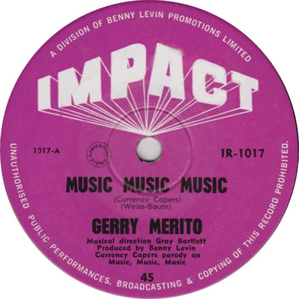 Apr-1967 Gerry Merito A: Music Music Music (Currency Capers) |
