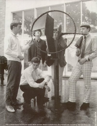 A group of friends at Mt Roskill High School formed a band called the Founders. Members of that group included Lou Rawnsley and Tony Walton, and when they left to join the Boddys, before going to the Underdogs, the Founders were no more. The two remaining members were Robert Zubielevitch and vocalist Fred Kalka. Fred called it a day, so Robert joined forces with another school mate, Ross Parker, who had been playing guitar with another group called the Jet Blacks. That group had also contained Jack and Dan Stradwick, before they went on to the Figures and then the Action, and Ian Revell, who was later to find his way into parliament.
