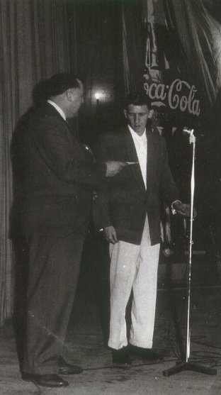 Gary singing at a Spencer St Teenage Dance. Far left is Dave Russell, later of