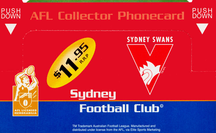98010098P-C-11/00 Card Code: 98010098P Chip Type: C - Siemens - S35 Expiry Date: 11/00 Denomination: $10.00 AFL Club - Sydney Swans Chip On Front Quantity Issued: 15,000 |