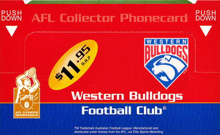 98010105P-C-11/00 Card Code: 98010105P Chip Type: C - Siemens - S35 Expiry Date: 11/00 Denomination: $10.00 AFL Club - Western Bulldogs Chip On Front Quantity Issued: 8,000 |