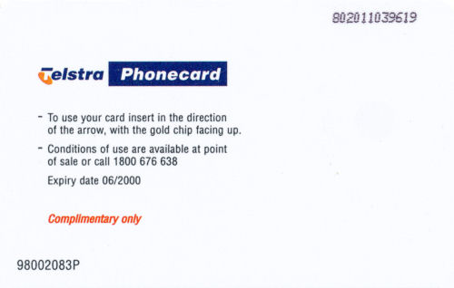 98002083P-C-06/00 Card Code: 98002083P Chip Type: C - Siemens - S35 Expiry Date: 06/00 Denomination: $2.00 Beach Scene - John Thomas Phonecards Chip On Front Quantity Issued: |