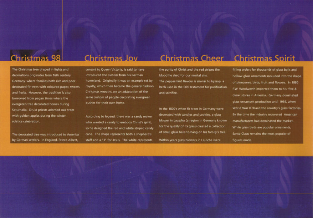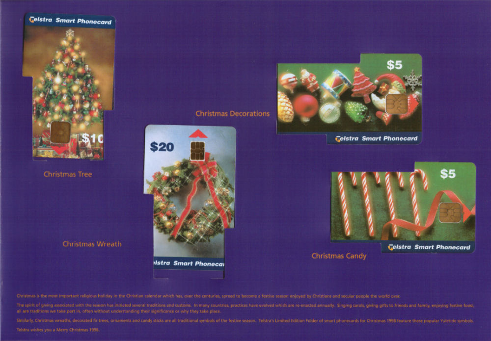 98005014L-B-10/00 Card Code: 98005014L Chip Type: B - Incard - IN2 Expiry Date: 10/00 Denomination: $5.00 Christmas 1998 - Christmas Decorations Chip On Front Quantity Issued: 1,500 Only available in Limited Edition Pack |