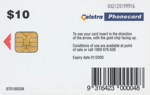 97010003N-A-01/00 Card Code: 97010003N Chip Type: A - Incard - IN1 Expiry Date: 01/00 Denomination: $10.00 Rain Forest, Tasmania Chip On Back Quantity Issued: |