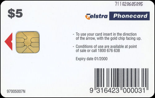97005007N-A-01/00 Card Code: 97005007N Chip Type: A - Incard - IN1 Expiry Date: 01/00 Denomination: $5.00 Brighton Beach, Victoria Chip On Back Quantity Issued: Barcode smooth print, not dot matrix, as above |