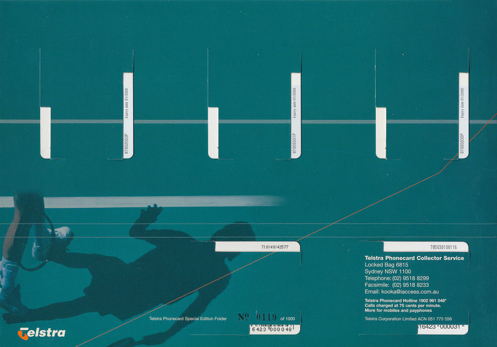 97005029P-A-01/00 Card Code: 97005029P Chip Type: A - Incard - IN1 Expiry Date: 01/00 Denomination: $5.00 Telstra Smart Champions - Tennis - Montage Chip On Back Quantity Issued: 3,500 + 1,000 in Folder |