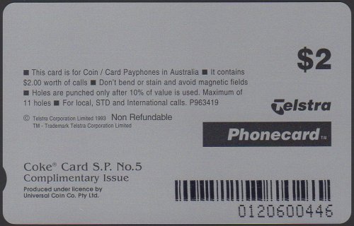 Coca Cola Card No 05 Issued: September 1996 Code Number: Issued: P963419 2,000