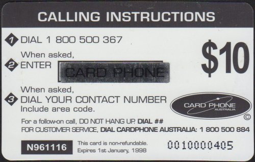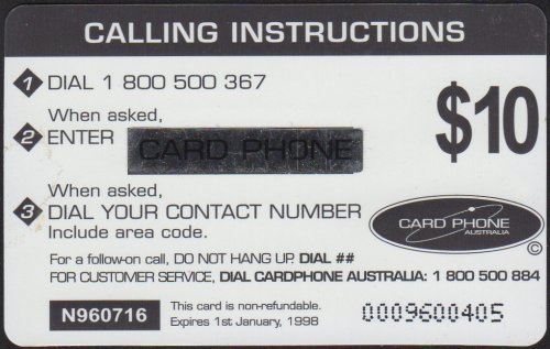 The 16 cards in this set had a label "CARD PHONE" obscuring a