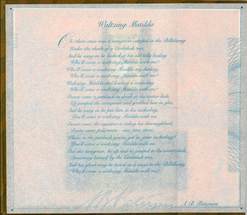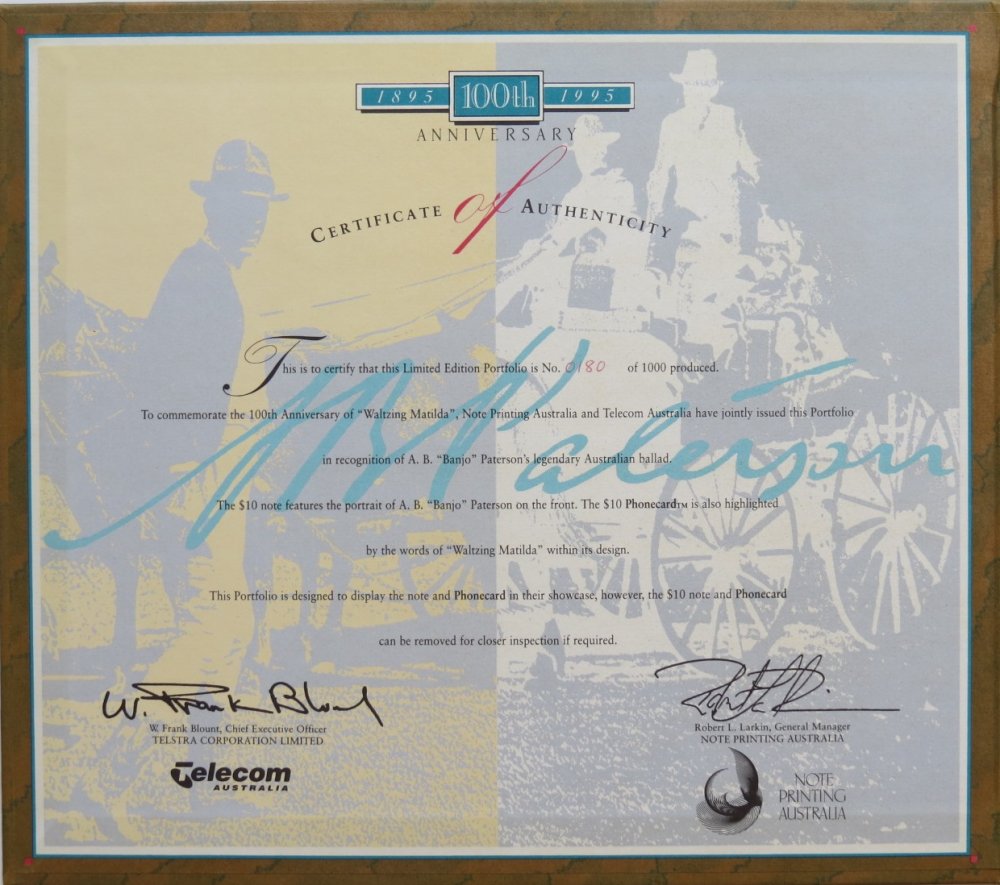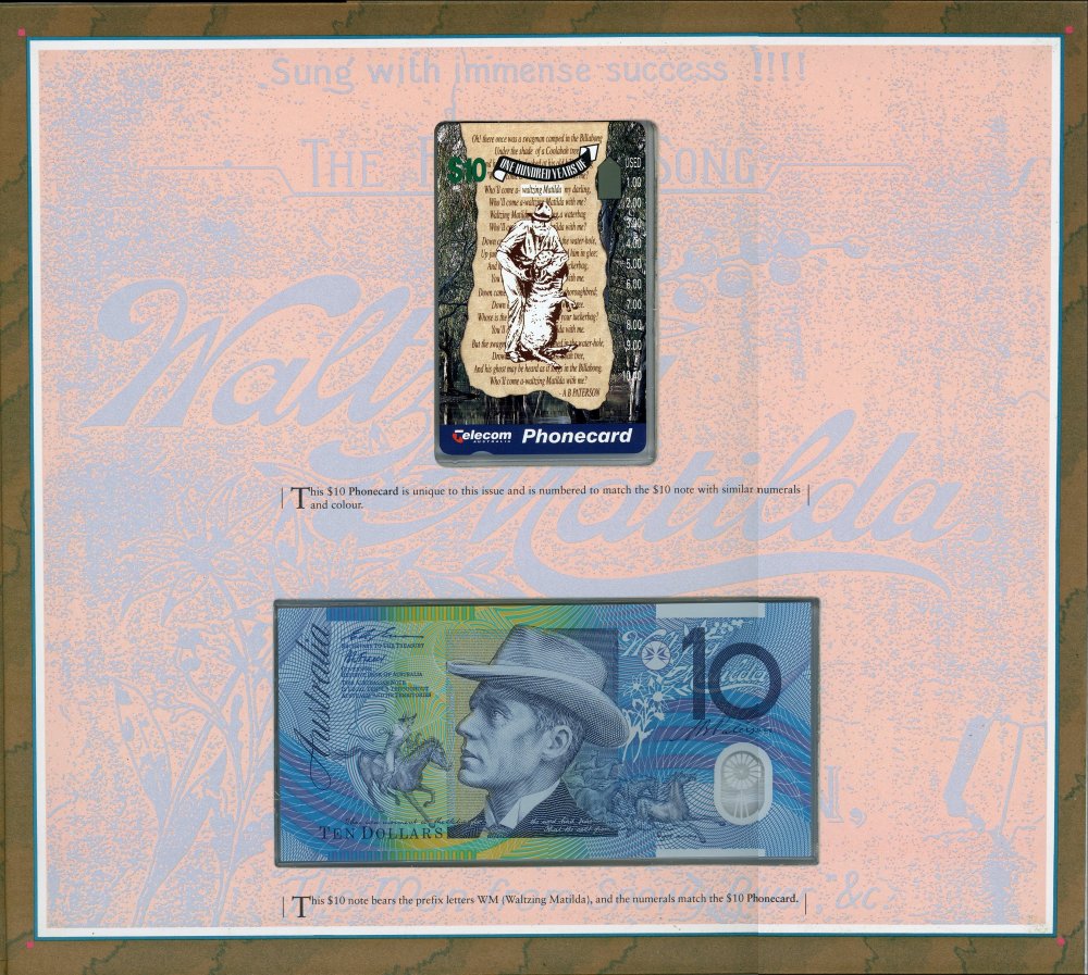 The Waltzing Matilda Pack was issued in April 1995. There were 5,000 packs issued in total. The first 1,000 were issued with a red barcode and serial numbers 0 to 999, and another 4,000 issued with a blue barcode and serial numbers 1,000 to 4,999. For details on this card, refer WALTZING MATILDA. |
