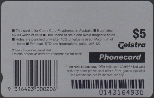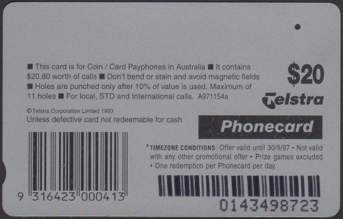 The early serial numbers of this set had a slightly different reverse to the later serial numbers. Note the $5 is higher above the word Telstra than on the other example and also the 5 is thicker. This occurred on prefix numbers 1399, 1400, 1401, 1402 & 1427 only. Other prefix numbers in this set had the lower $5 amount. The breakdown is as follows:- 1399, 1400 00000-29999 High Thick $5, 30000-99999 Low Thin $5 1401, 1402 00000-19999 High Thick $10, 20000-99999 Low Thin $10 1427 00000-24999 High Thick $20, 25000-99999 Low Thin $20 Prefix numbers 1428-1434 all have the Low Thin values.